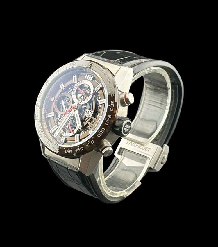 Model CAR201u-0 swiss made is an asthetic 43 mm watch.The model features steel and ceramic case with automatic movement and 100 atm water resistance.The condition is little used it comes with original leather strap and buckle.It comes in brown bezel with skeleton open movement.The watch is 100 percent original and verified with best price from luxury watches centre.